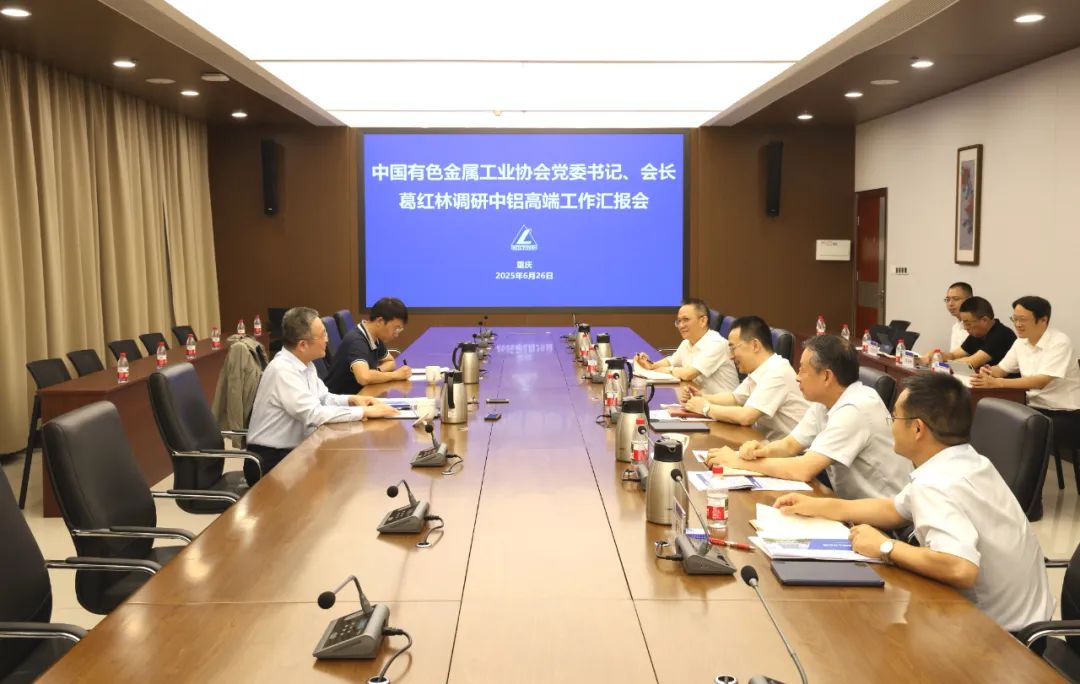 6月25—26日,中国有色金属工业协会党委书记、会长葛红林到中国铝业集团高端制造股份有限公司(以下简称“中铝高端”)调研。中铝高端党委副书记、总经理王建国陪同调研。